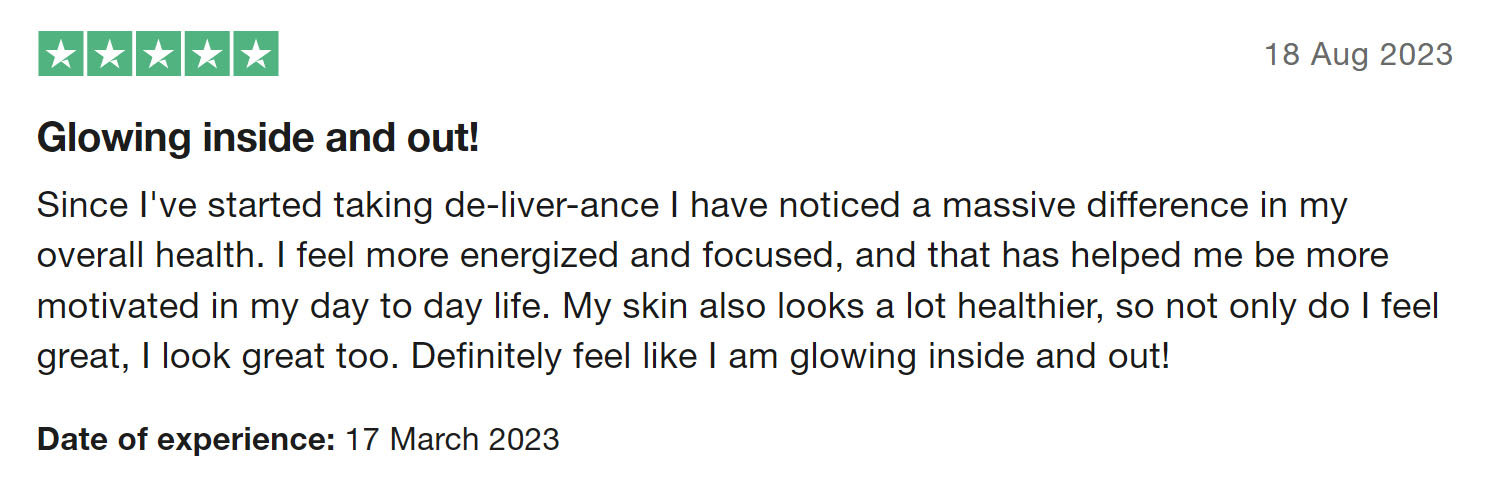 Backed by rigorous scientific research, the ingredients in de-liver-ance® are proven to promote mental alertness, reduce the negative effects of toxins on the body, help maintain optimum liver health and keep you glowing, inside and out.